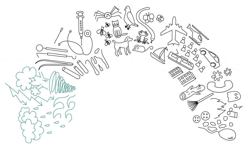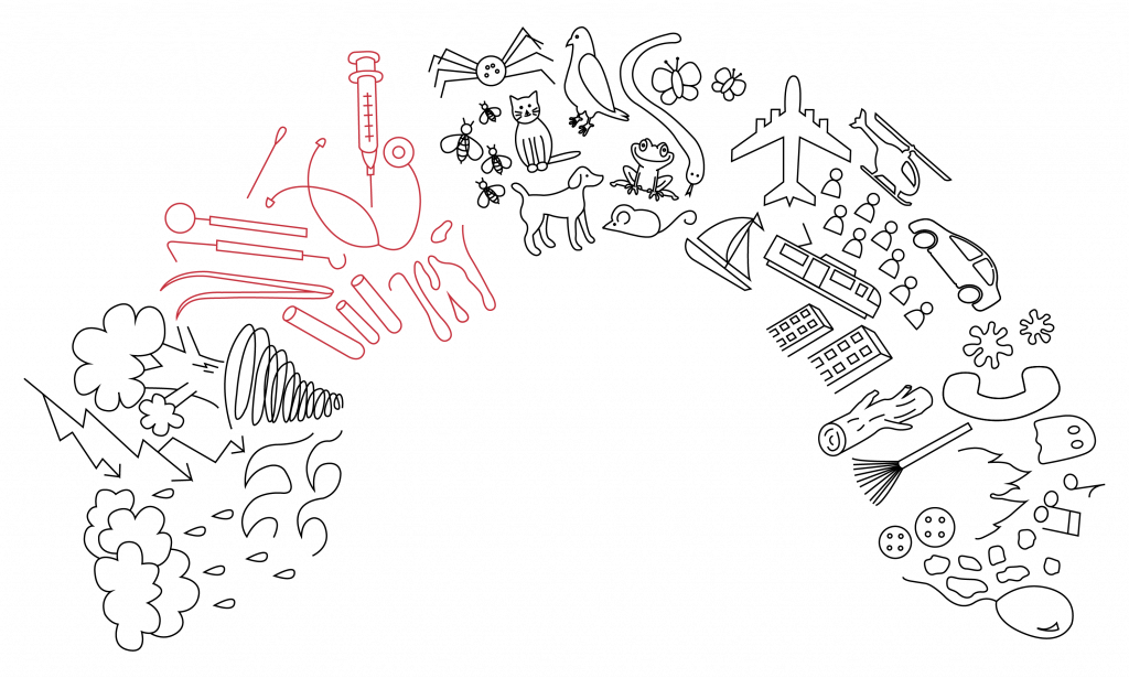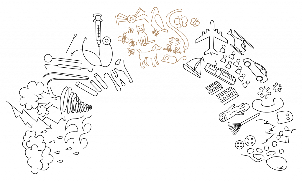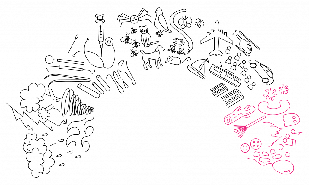 spiders, bees, dogs, cats, pigeons, frogs, mouse, snakes, butterflies
